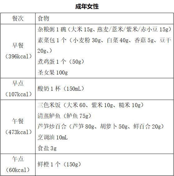 同时还要注意以下原则:1.主食中最好有1/3的粗杂粮和杂豆类,比如燕麦,玉米,红豆等;2.蔬菜的选择要多“色”,红绿黄等深颜色的蔬菜要占到1/2以上,土豆、山药、莲藕等块茎类的蔬菜要当成主食来吃;3.肉类要挑肥拣瘦,优先选择鱼禽类,吃鸡蛋不要扔掉蛋黄;4.每天喝点牛奶,多吃点豆制品,一周吃几次坚果;5.注意烹调方法,少盐少油;在外就餐时尽量少选油炸油煎和口味重的食物;6.足量饮水,每天7~8杯水,总量达到1500~1700ml左右。不喝或者少喝含糖饮料。(食谱举例而言)
