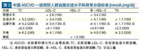 参考文献:中国成人血脂异常防治指南(2016年修订版)