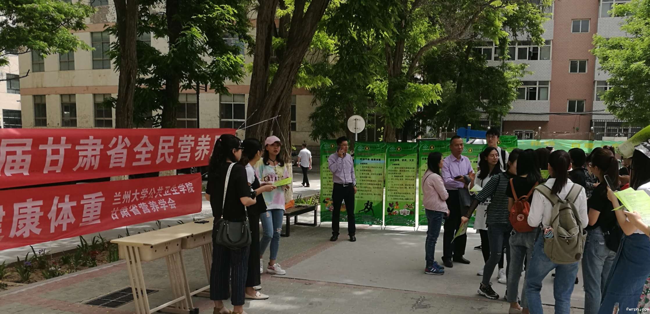2018年5月16日,兰州大学公共卫生学院营养与食品卫生学研究所,在兰州大学医学校区学生小广场布置展板,印发宣传资料,对过往大学生进行营养周宣讲。同日下午,对学生开展营养周专题讲座,累计参会学生500人。不仅对在校大学生进行了营养知识的宣讲,还为同学们答疑解惑,为促进大学生的身体素质的提高具有积极影响。