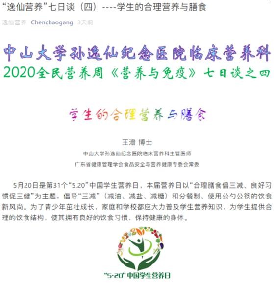 中山大学孙逸仙纪念医院临床营养科2020全民营养周活动概要