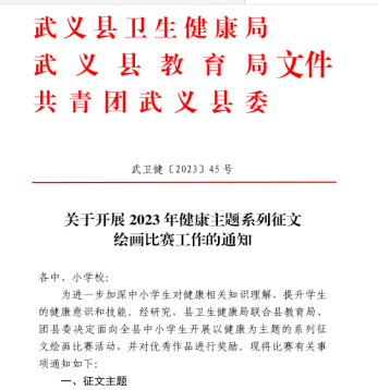 县卫生健康局联合县教育局、团县委面向全县中小学生开展了以“爱眼护眼,近视防控”和“科学食养,助力儿童健康成长”为主题的征文绘画比赛活动。
