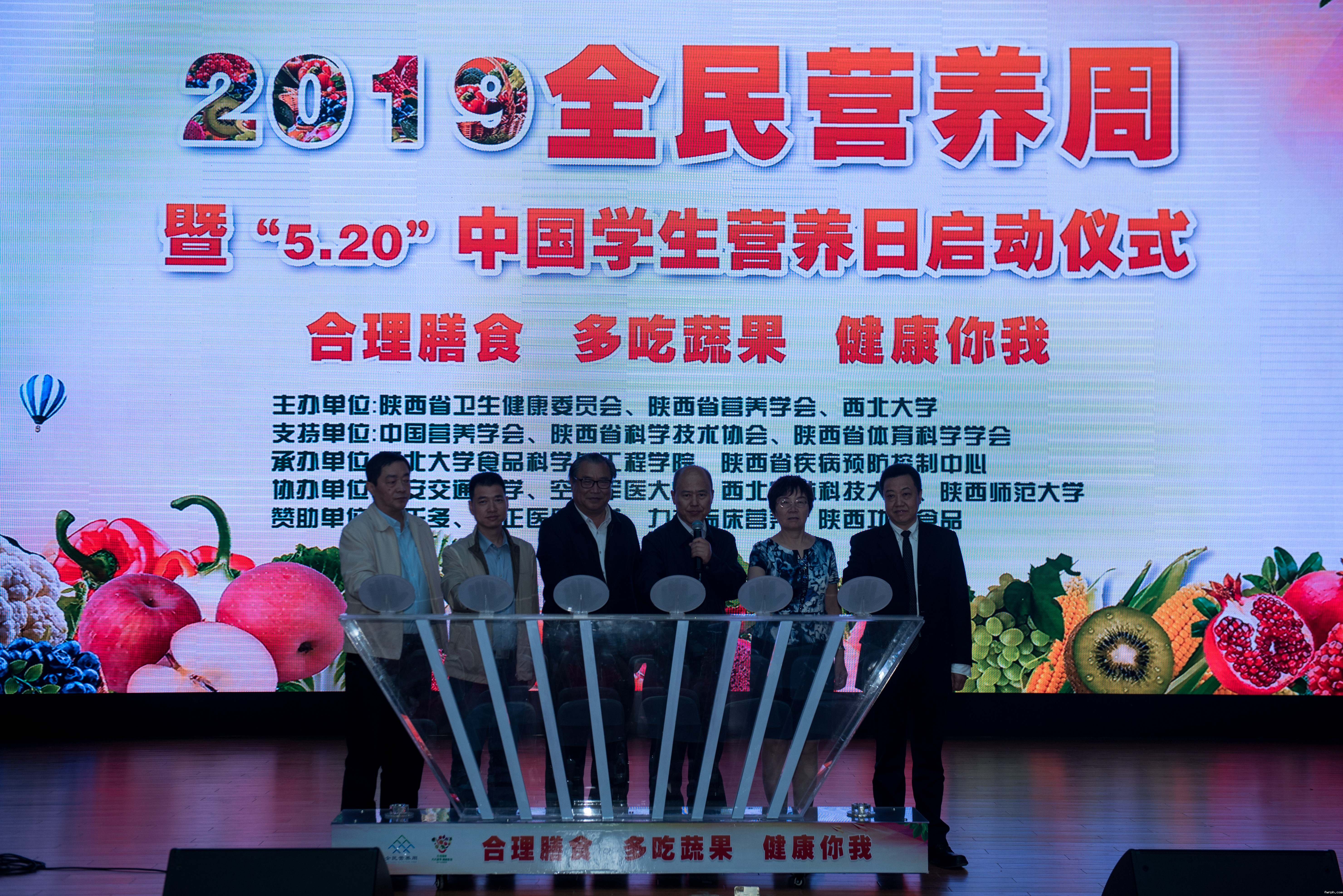 活动最后,与会嘉宾齐按启动装置,陕西省卫生健康委员会副巡视员郝超英庄重宣布:“2019陕西省“全民营养周”暨“5.20”中国学生营养日启动”。