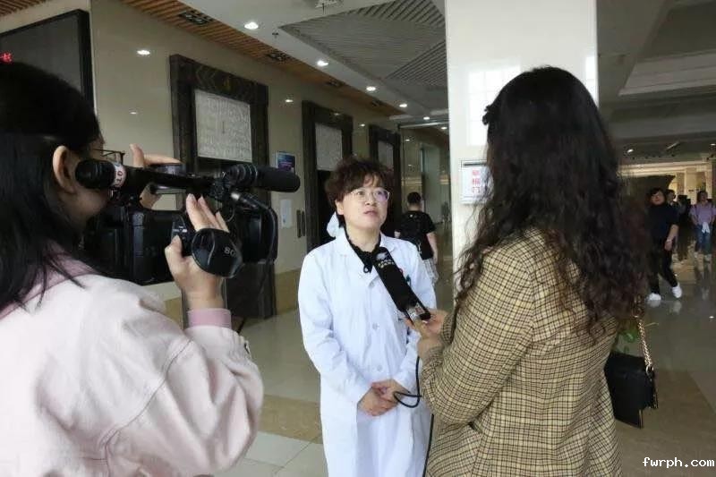 图为电视台记者在采访义诊医生