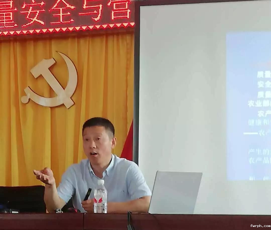 纪宝全副处长向大家介绍了农产品质量安全现状及其如何科学选择绿色安全农产品、农产品质量安全工作依据、任务,为保障群众健康把好第一道关卡。