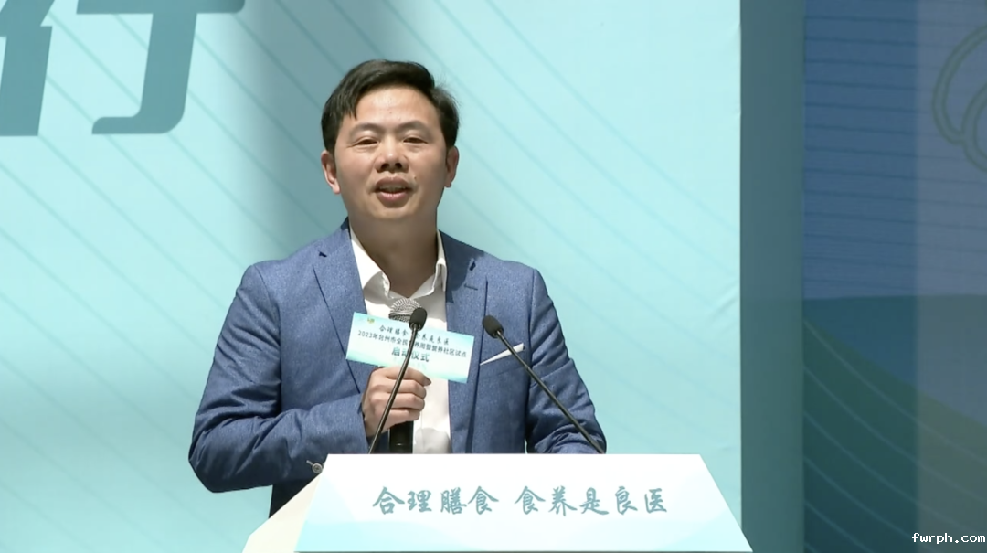 启动仪式正式开始,台州市卫生健康委党委委员、副主任胡富宇,主持介绍活动主题及内容以及出席领导和嘉宾。胡富宇主任表示举行2023年台州市全民营养周暨营养社区试点的启动仪式,旨在通过以科学界为主导,全社会、多渠道、集中力量、传播核心营养知识和实践,使民众了解食物、提高健康素养、建立营养新生活,让营养意识和健康行为代代传递,提升国民素质,实现中国“营养梦 健康梦”。对各位领导和嘉宾的莅临,表示热烈的欢迎和衷心的感谢!