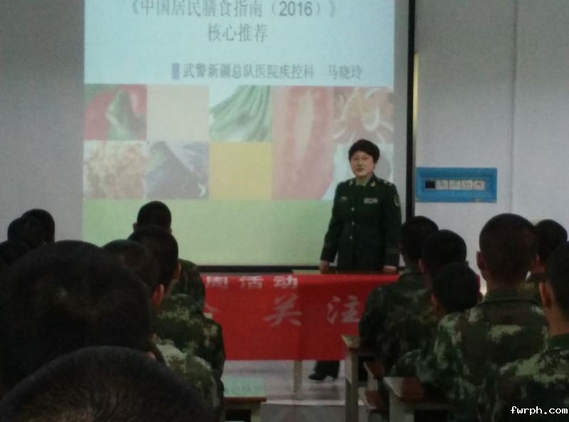2016年5月13日,武警新疆总队医院疾控科在本院开展全民营养周《中国居民膳食指南(2016)》主题讲座活动