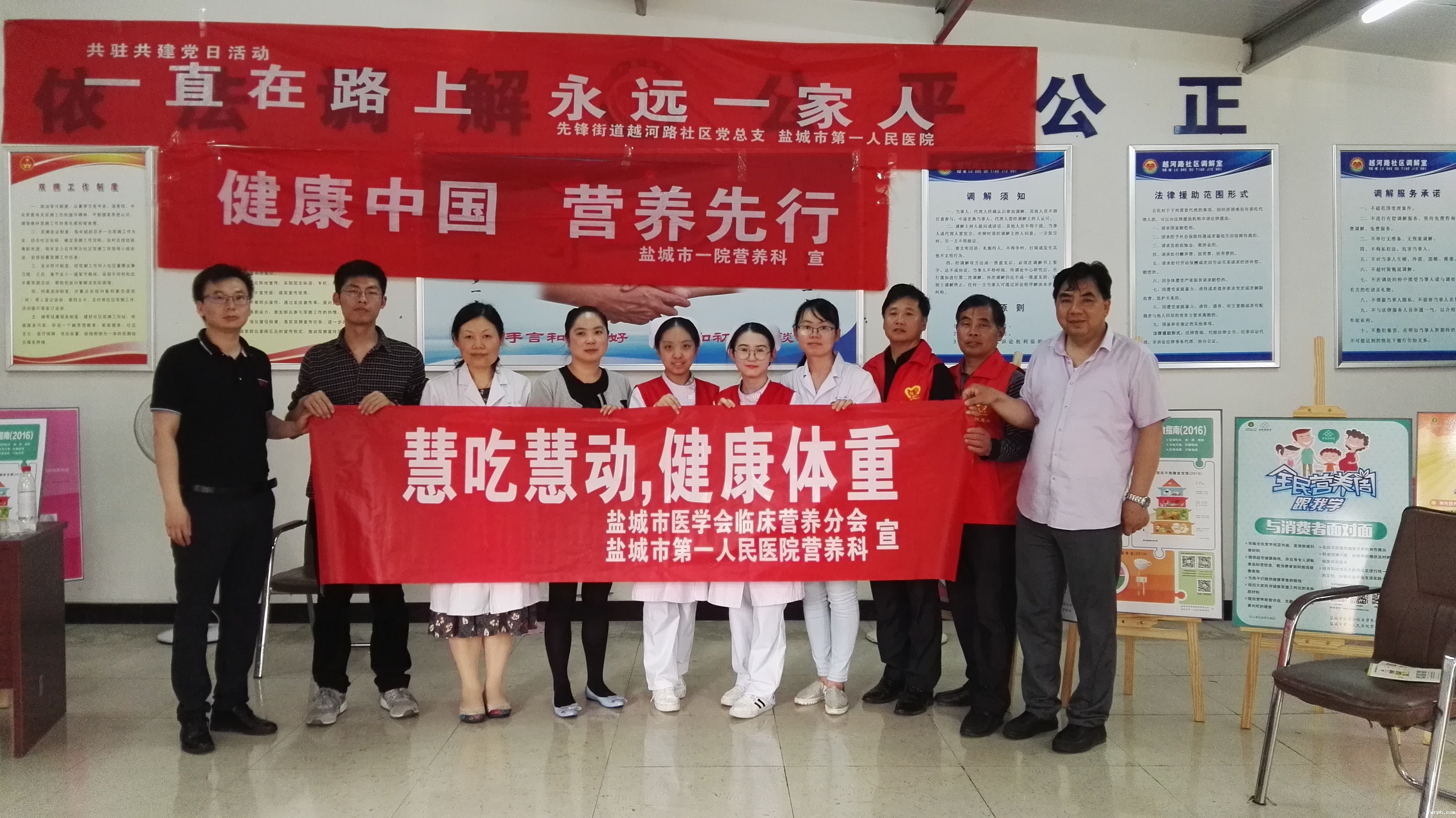 5月14日下午,盐城市第一人民医院营养科联合团委走进越河路社区开展营养宣传活动。活动通过展板展示、宣传讲解、有奖问答,测量身高、体重、血压等形式来普及“吃动平衡,健康体重”相关知识,提高群众的健康意识。