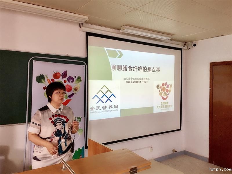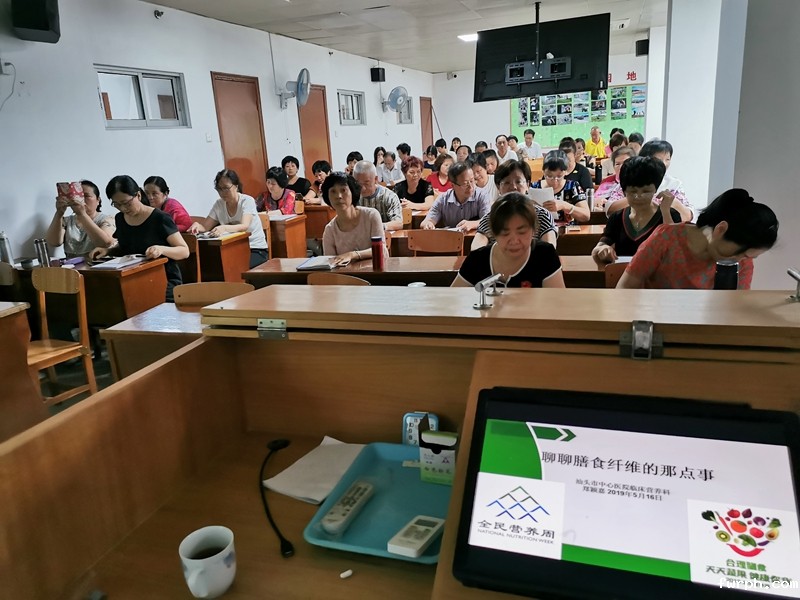 5月16日,“全民营养周进校园”,郑颖嘉医生于汕头市老年大学给老年大学生们做了《膳食纤维那点事》的科普讲座,宣传膳食纤维的营养知识及如何从蔬果中获得足够的膳食纤维,参与人数56人。