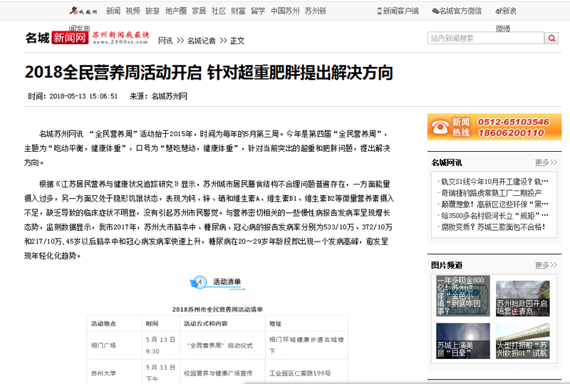 江苏省苏州市全民营养周——媒体宣传报道