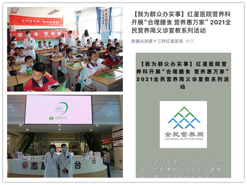 新疆|新疆生产建设兵团第十三师红星医院全民营养周开展进校园、微信平台宣教、门诊大屏幕播放宣传视频系列科普活动